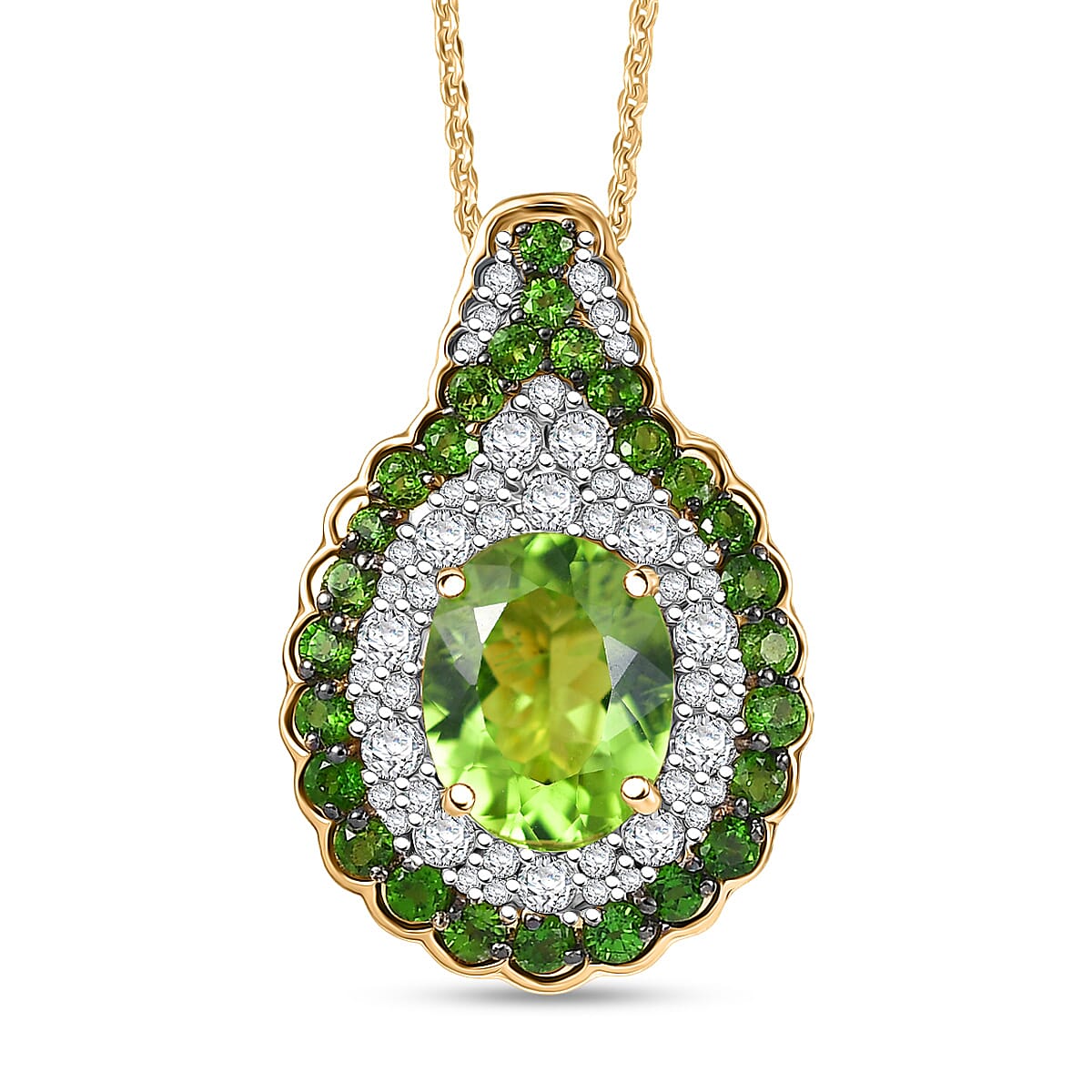 D'Joy Hebei Peridot and Multi Gemstone 4.20 ctw Classic Ornate Oval Pendant Necklace in 18K Vermeil Yellow Gold Over Sterling Silver 20 Inches
