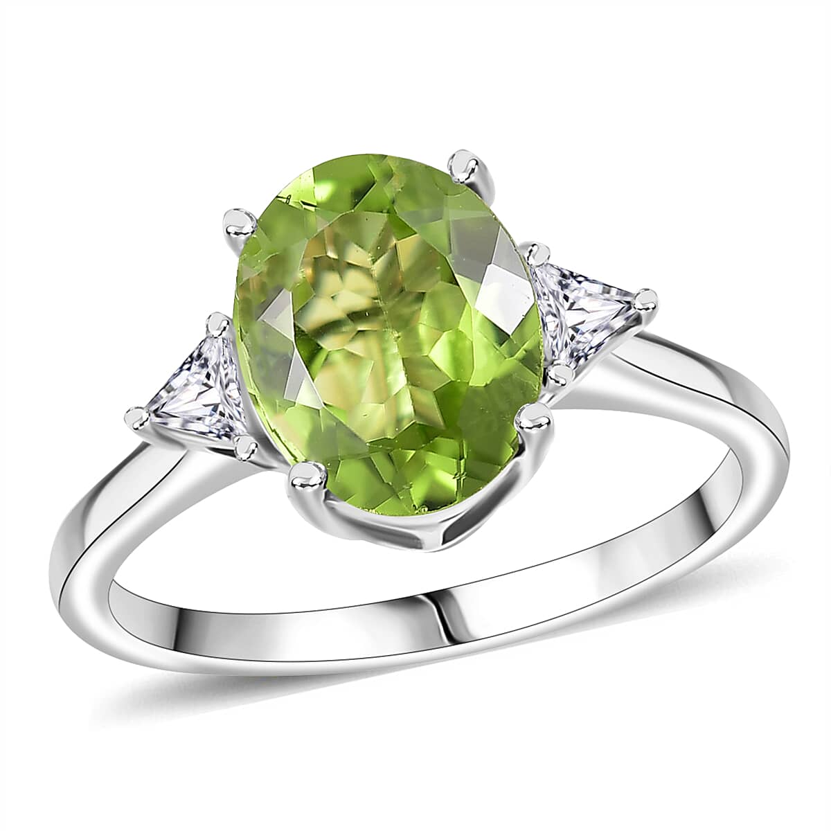 D'Joy Hebei Peridot, Moissanite Ring in Rhodium Over Sterling Silver 3.25 ctw (Size 9.0)