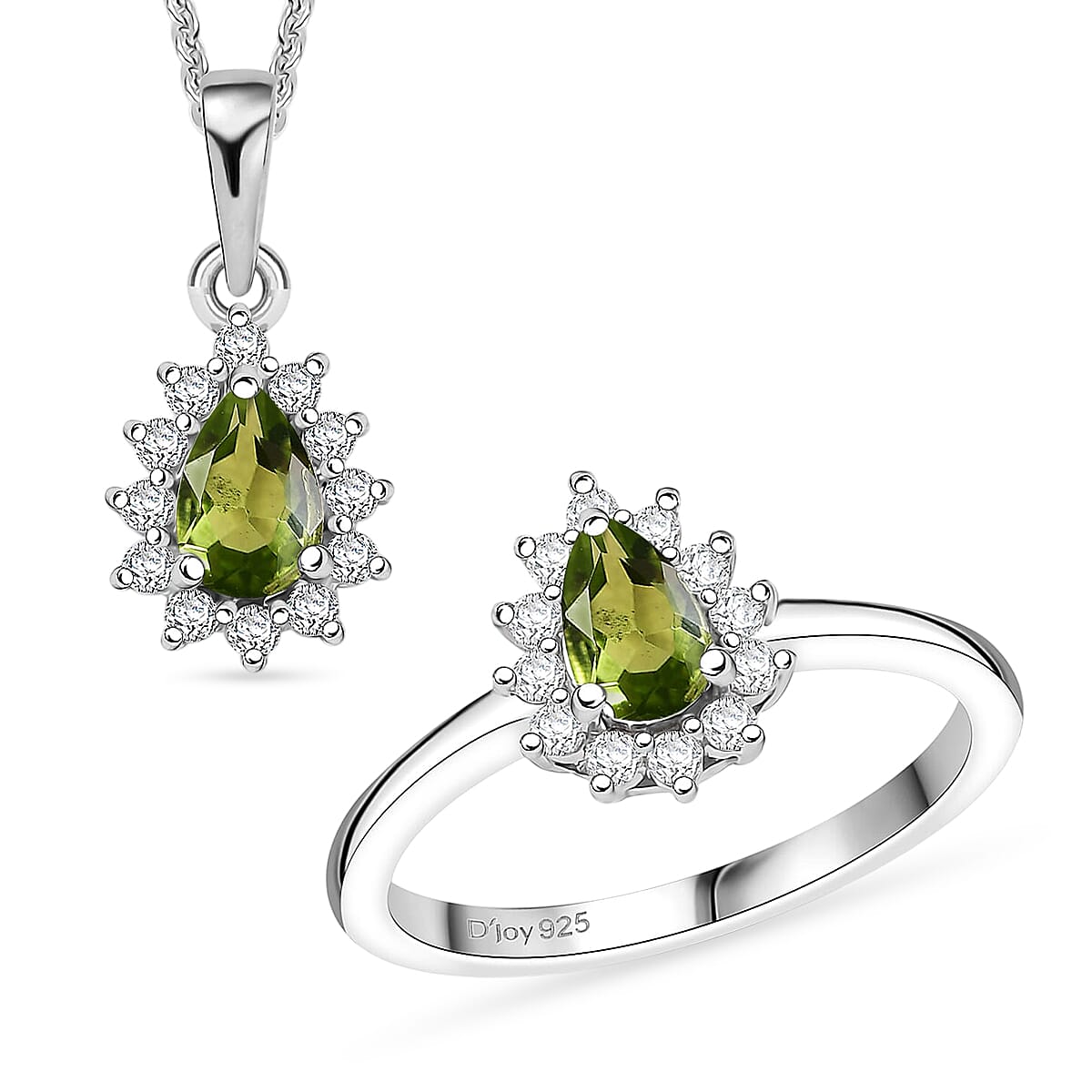 D'Joy Hebei Peridot, White Zircon 1.35 ctw Ring (Size 8.0) and Pendant Necklace 20 Inches in Rhodium Over Sterling Silver