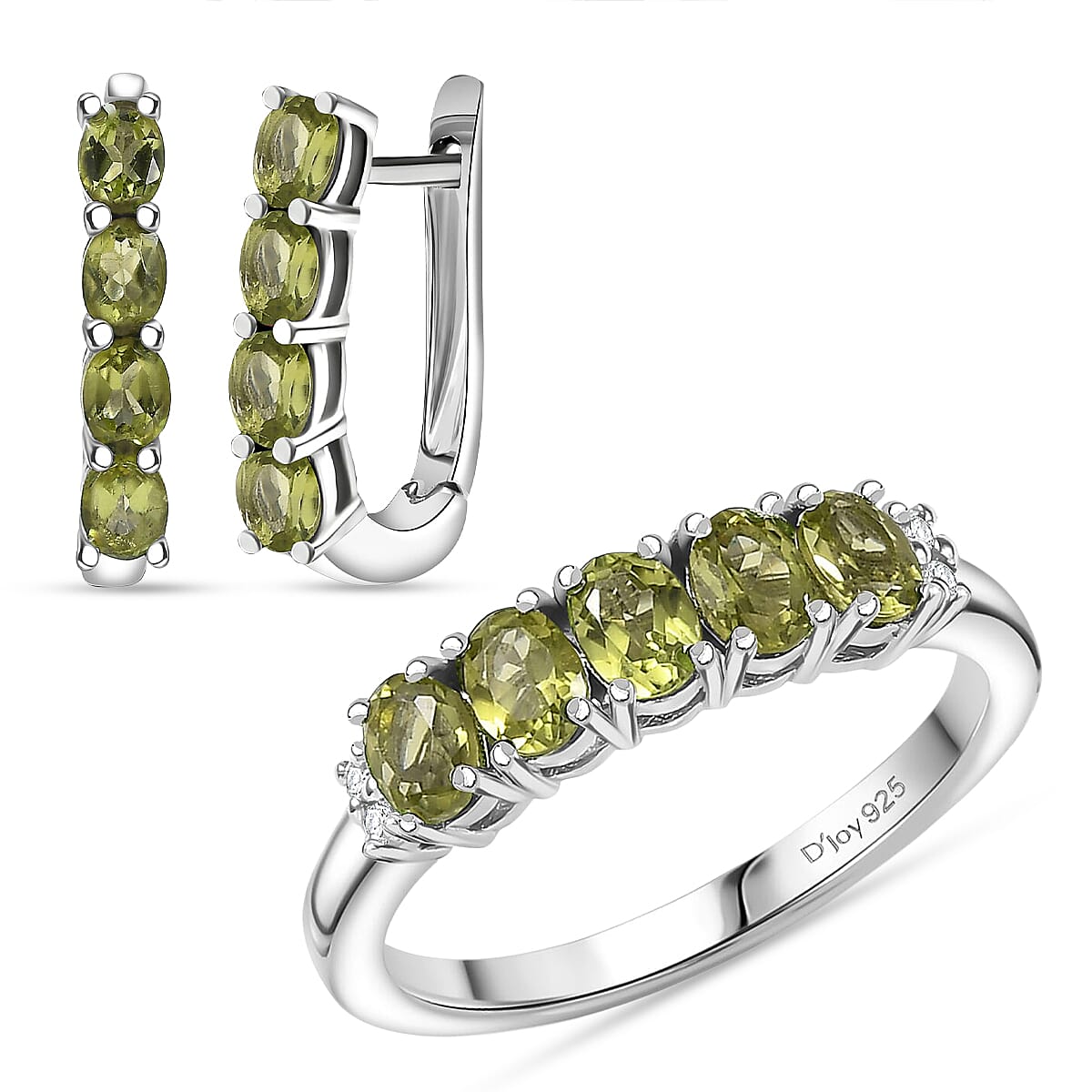 D'Joy Hebei Peridot, White Zircon 2.35 ctw Band Ring (Size 9.0) and Earrings in Rhodium Over Sterling Silver