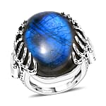 D'Joy Indian Artisan Crafted AAA Malagasy Labradorite Deer Horns Ring in Black Oxidised Sterling Silver 34.30 ctw (Size 7.0)