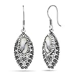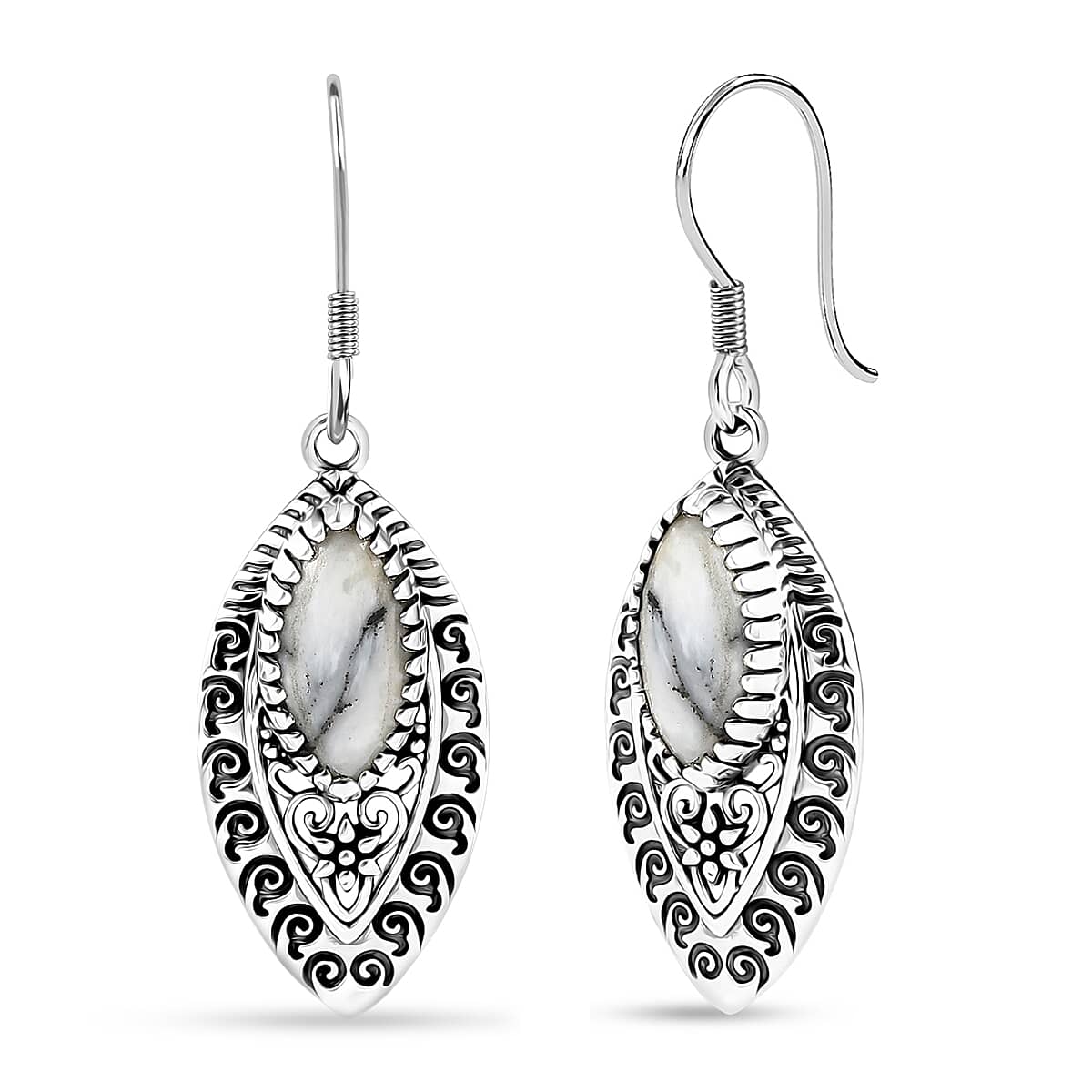 D'Joy Indian Artisan Crafted Premium White Buffalo 6.00 ctw Earrings in Black Oxidised Sterling Silver