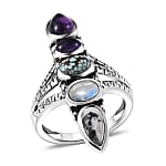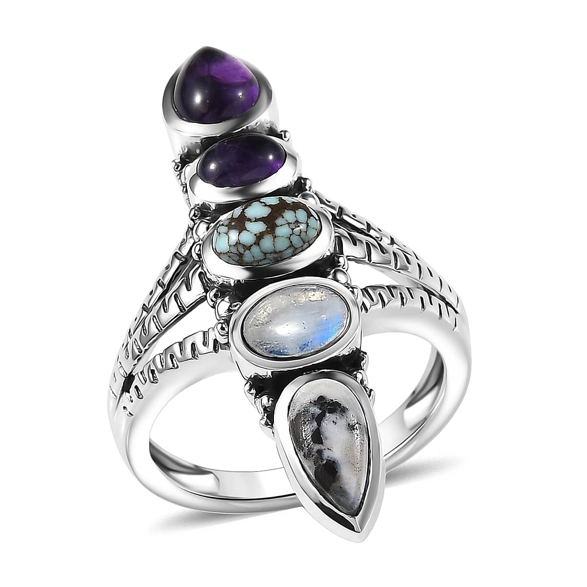 D'Joy Indian Artisan Crafted White Buffalo, Multi Gemstone Ring in Black Oxidised Sterling Silver 2.90 ctw (Size 7.0)