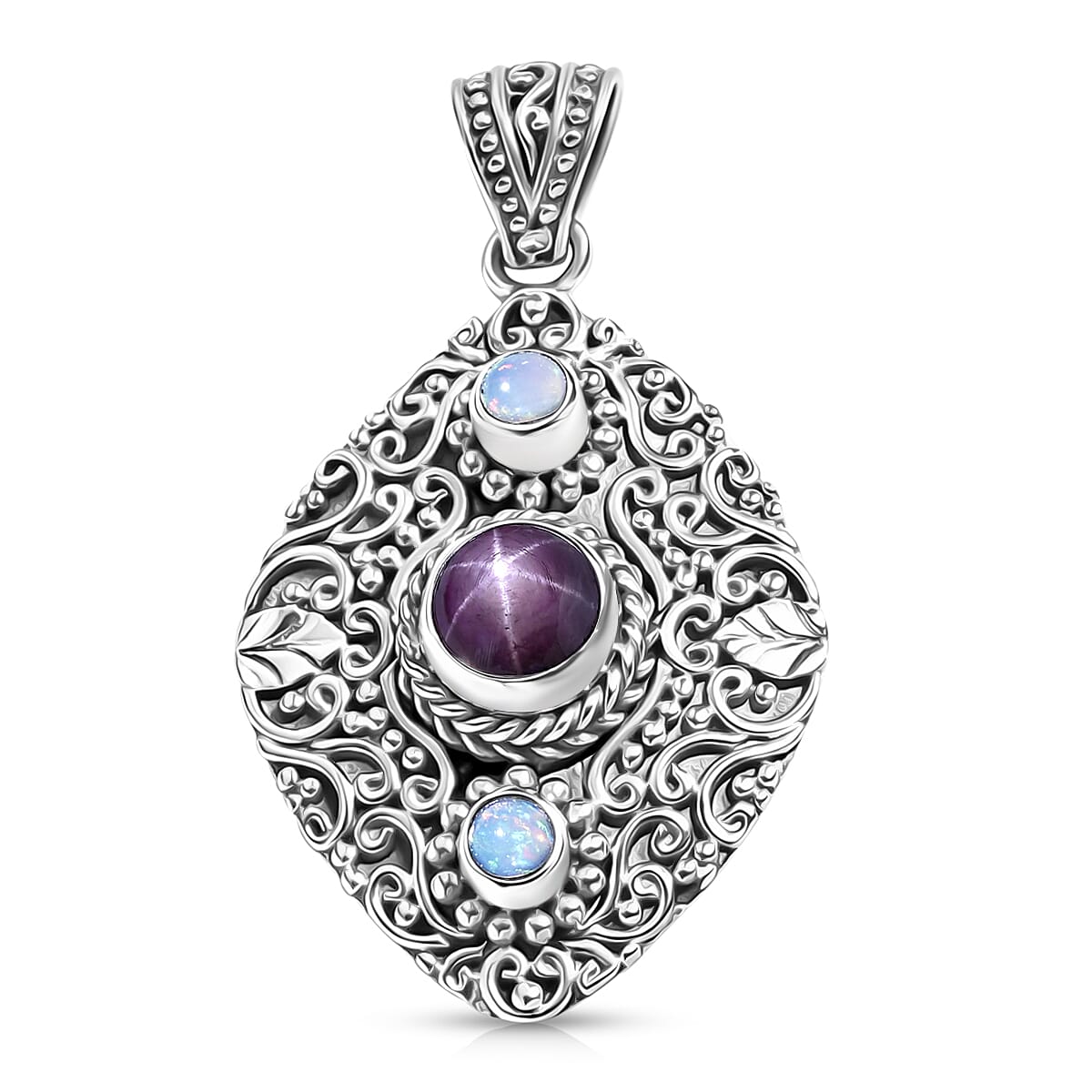 D'Joy Indian Star Ruby and Ethiopian Welo Opal 2.70 ctw Filigree Art Pendant Without Chain in Sterling Silver