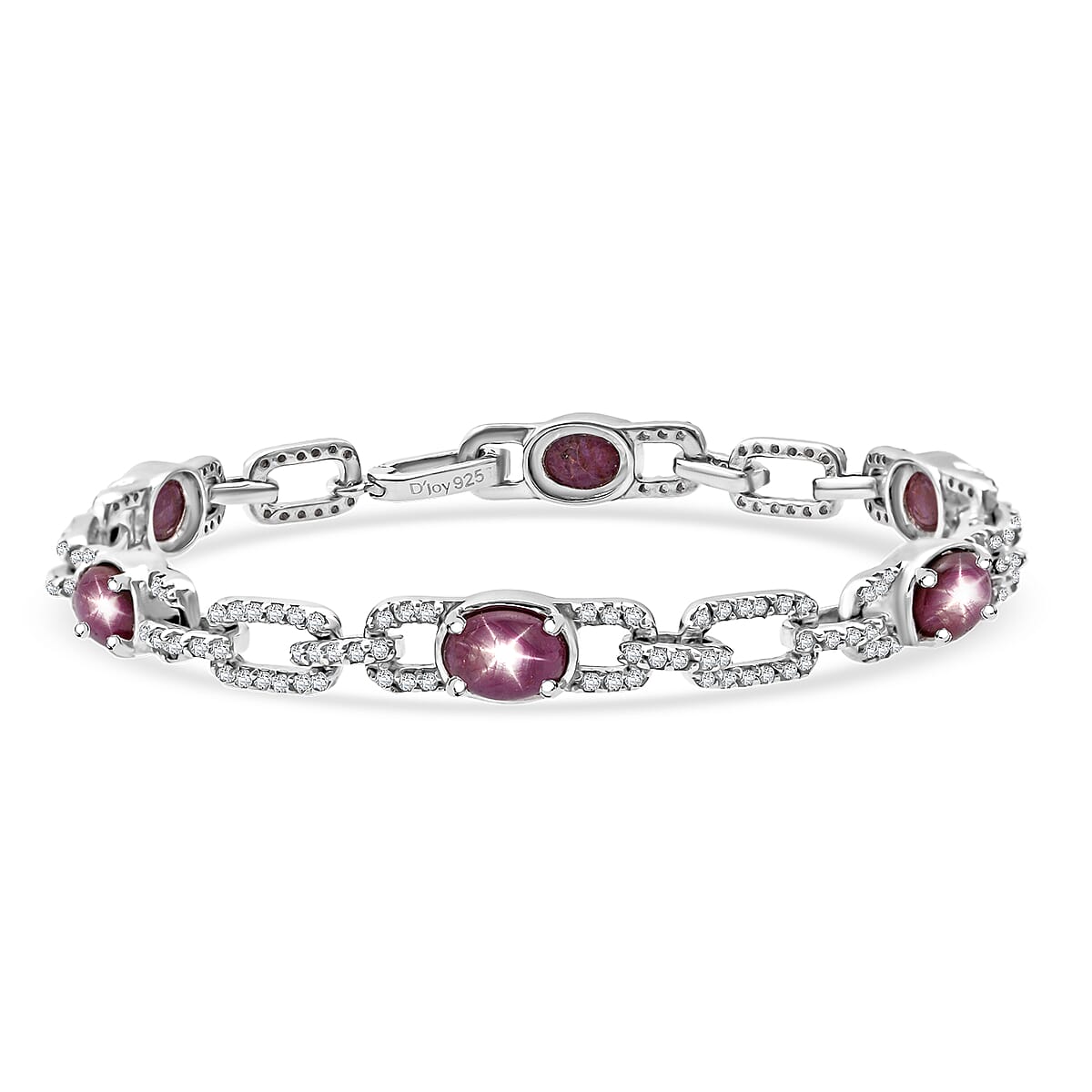 D'Joy Indian Star Ruby, White Zircon Bracelet in Rhodium Over Sterling Silver 9.25 ctw (6.50 Inches)