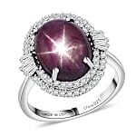 D'Joy Indian Star Ruby, White Zircon Ring in Rhodium Over Sterling Silver 11.70 ctw (Size 9.0)