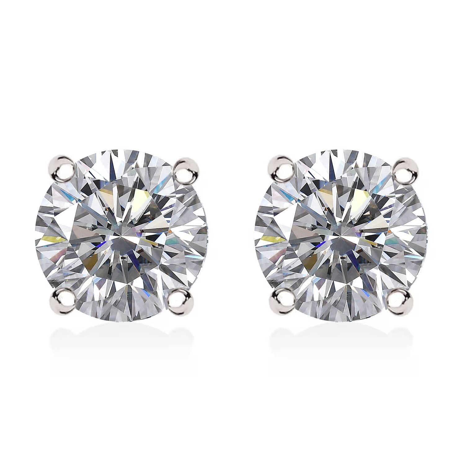 D'Joy J Francis Embellished with Zirconia by Swarovski 3.0 ctw Solitaire Stud Earrings in Platinum Over Sterling Silver