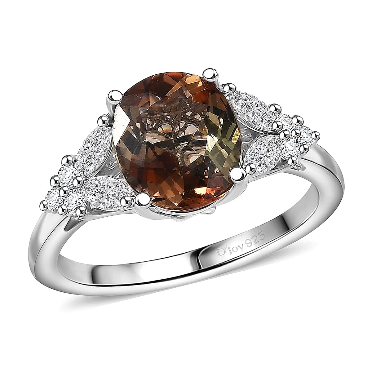 D'Joy Jenipapo Andalusite, Moissanite Ring in Rhodium Over Sterling Silver (Size 10.0) 3.15 ctw
