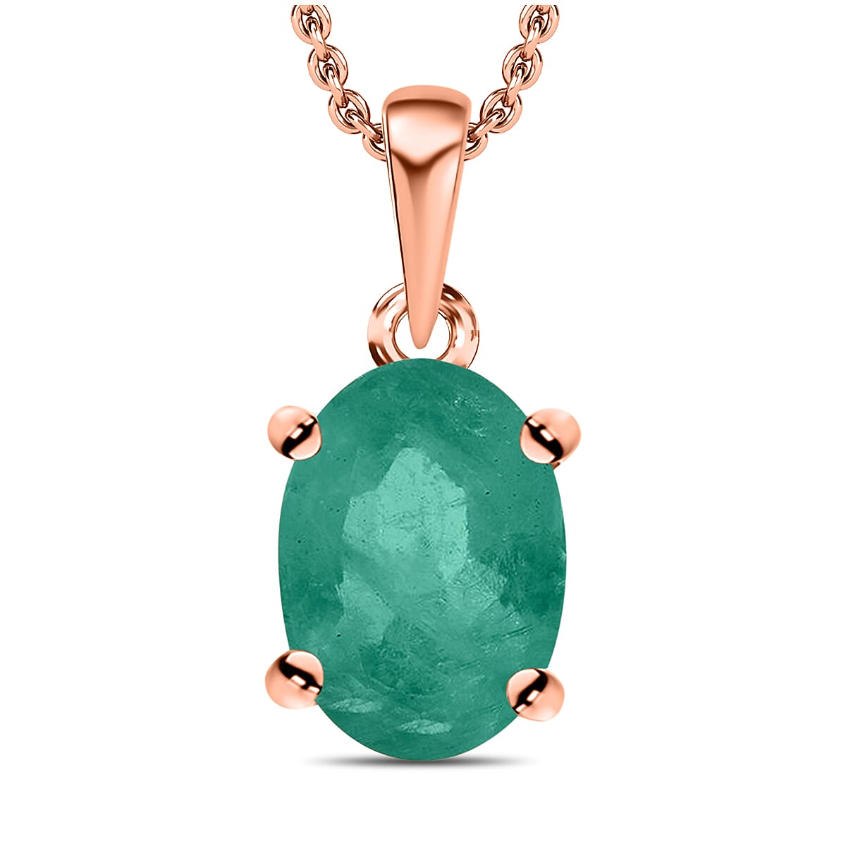 D'Joy Kagem Zambian Emerald 0.80 ctw Solitaire Pendant without Chain in Vermeil Rose Gold Over Sterling Silver