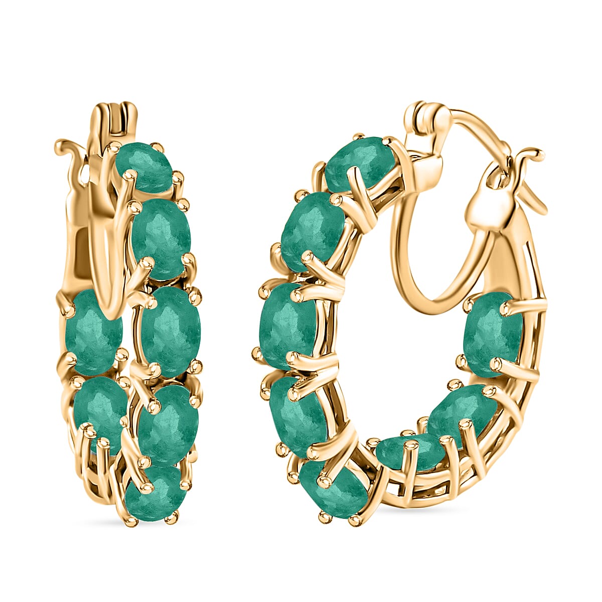 D'Joy Kagem Zambian Emerald 7.90 ctw Inside-out Hoop Earrings in 18K Vermeil Yellow Gold Over Sterling Silver (Del. in 10-12 Days)