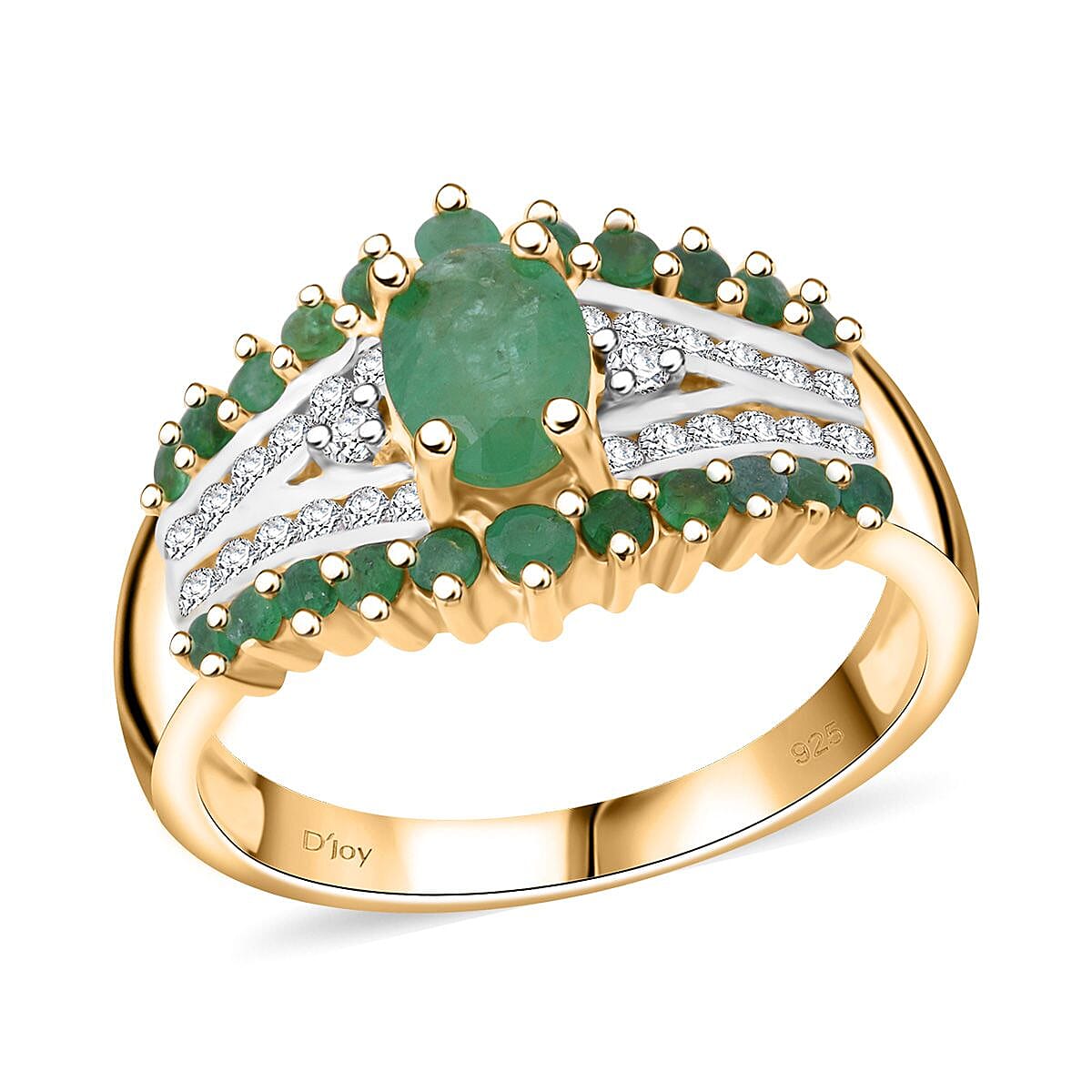 D'Joy Kagem Zambian Emerald and White Zircon 2.00 ctw Ring in 18K Vermeil Yellow Gold Over Sterling Silver (Size 8.0)