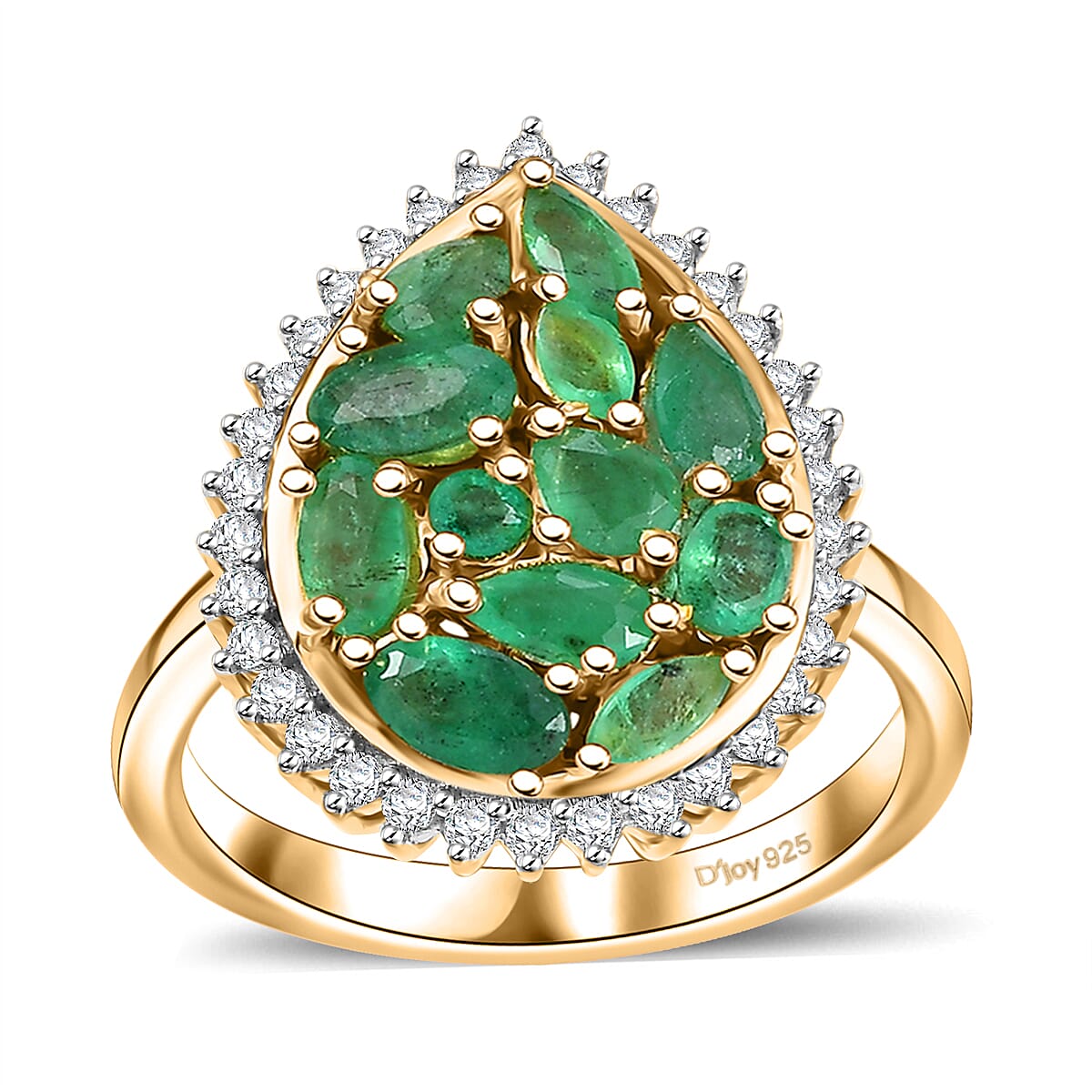 D'Joy Kagem Zambian Emerald and White Zircon 2.25 ctw Dewdrop Ring in 18K Vermeil Yellow Gold Over Sterling Silver (Size 10.0)