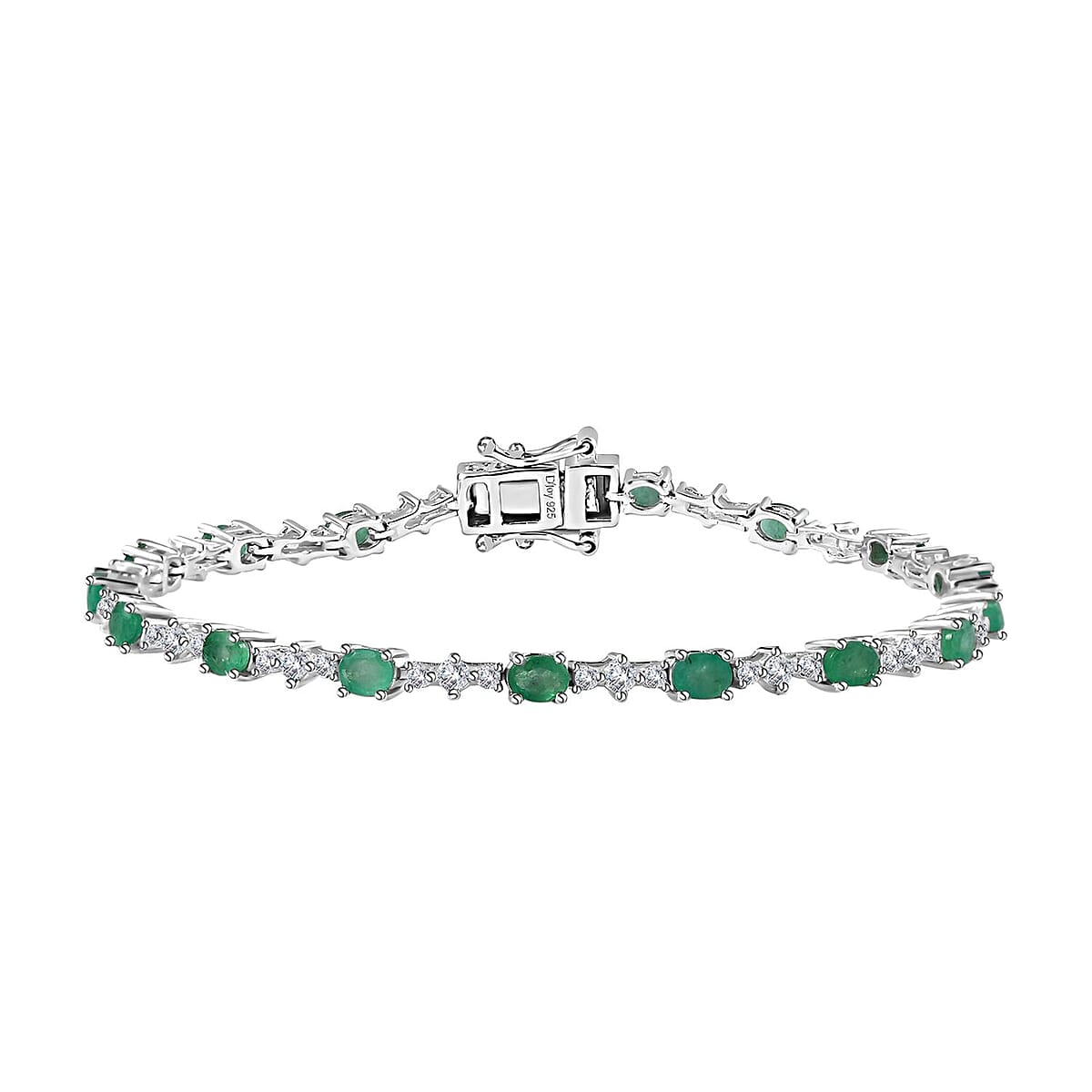 D'Joy Kagem Zambian Emerald and White Zircon Bracelet in Platinum Over Sterling Silver (7.25 In) 4.00 ctw