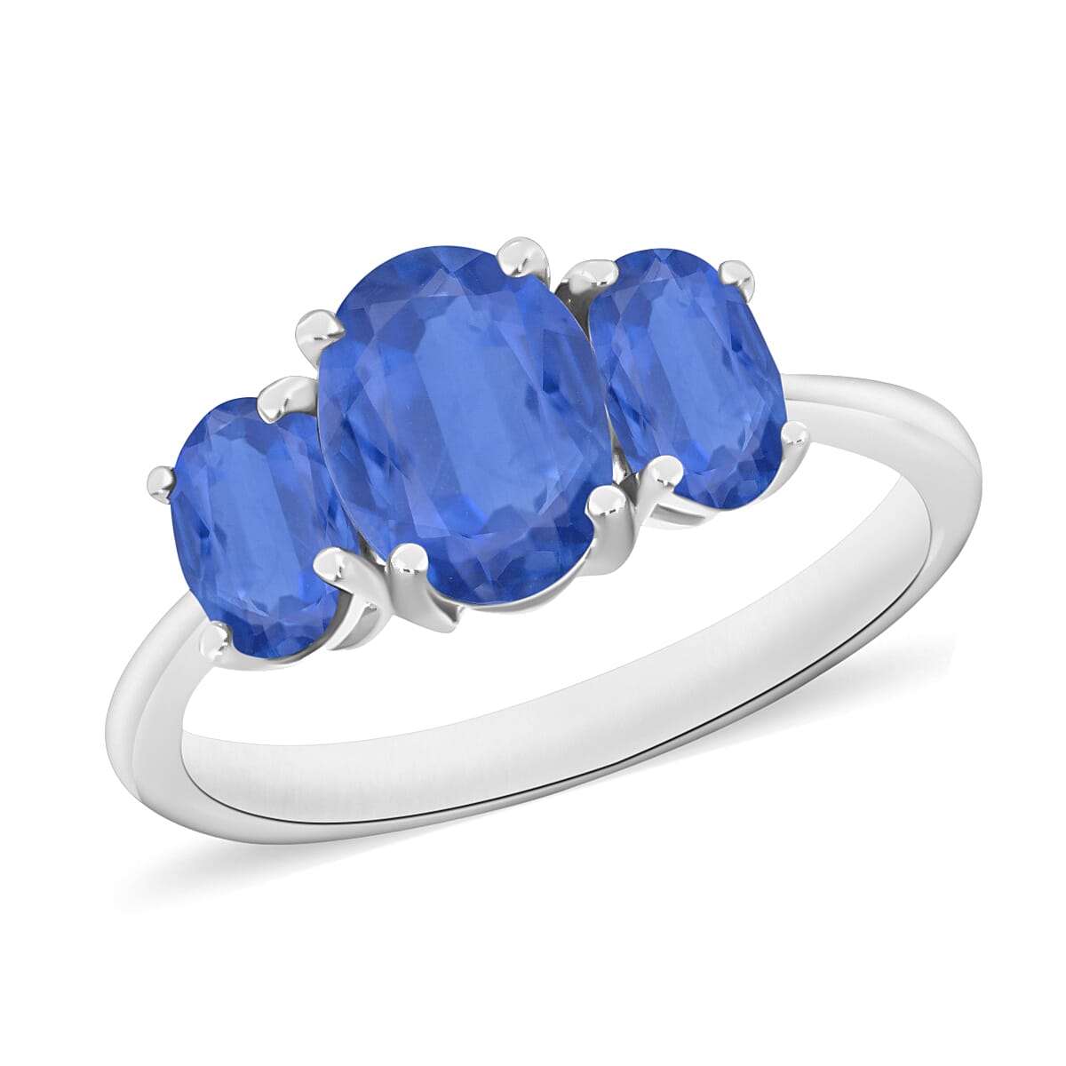 D'Joy Kanchanaburi Blue Sapphire 2.60 ctw 3 Stone Ring in Platinum Over Sterling Silver (Size 12.0) (Del. in 10-12 Days)
