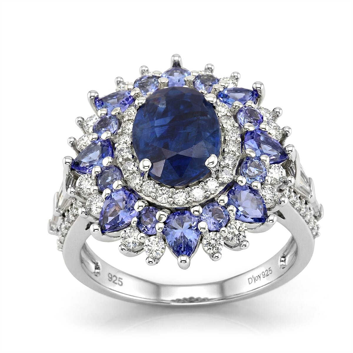 D'Joy Kashmir Kyanite and Multi Gemstone 5.00 ctw Fire Bloom Ring in Rhodium Over Sterling Silver (Size 9.0)