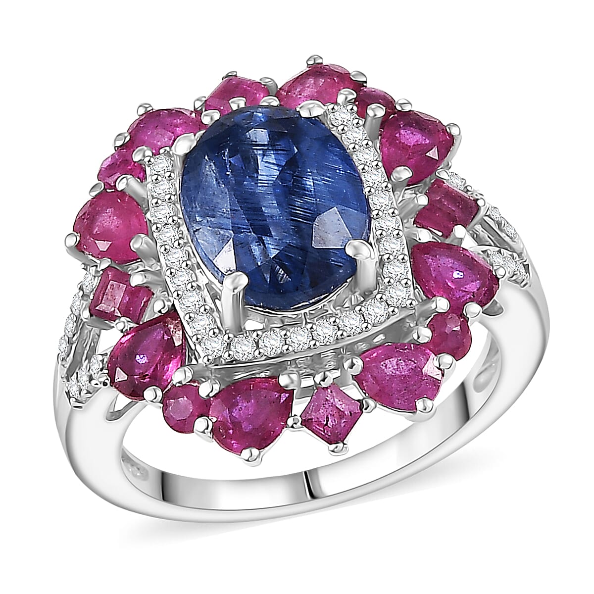 D'Joy Kashmir Kyanite and Multi Gemstone 6.40 ctw Imperial Bloom Ring in Sterling Silver (Size 6.0)