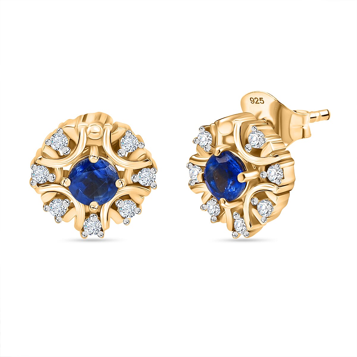 D'Joy Kashmir Kyanite and White Zircon 1.00 ctw Earrings in 18K Vermeil Yellow Gold Over Sterling Silver
