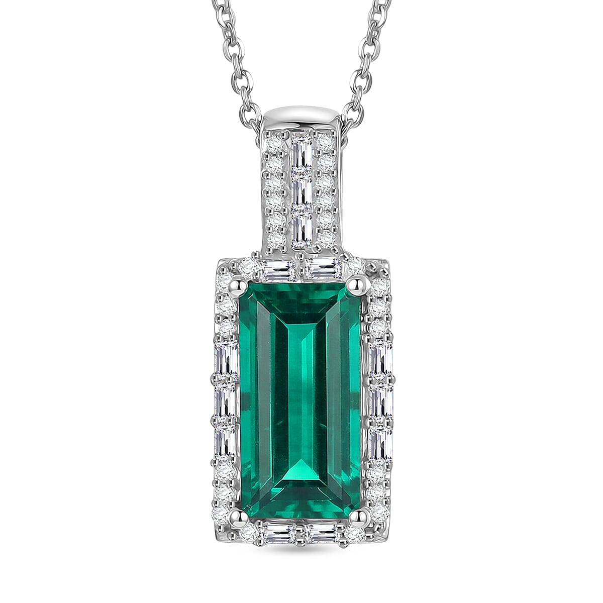 D'Joy Lab Grown Columbian Emerald and Moissanite 3.20 ctw Royal Garden Path Pendant Necklace in Rhodium Over Sterling Silver 20 Inches