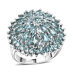 D'Joy Lagoon Apatite Chrysanthemum Flower Ring in Rhodium Over Sterling Silver 5.85 ctw (Size 7.0)