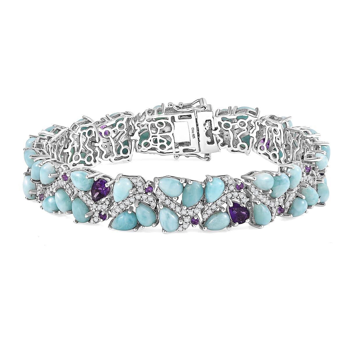 D'Joy Larimar and Multi Gemstone 31.00 ctw Sea Waves Bracelet in Rhodium Over Sterling Silver (7.25 In)