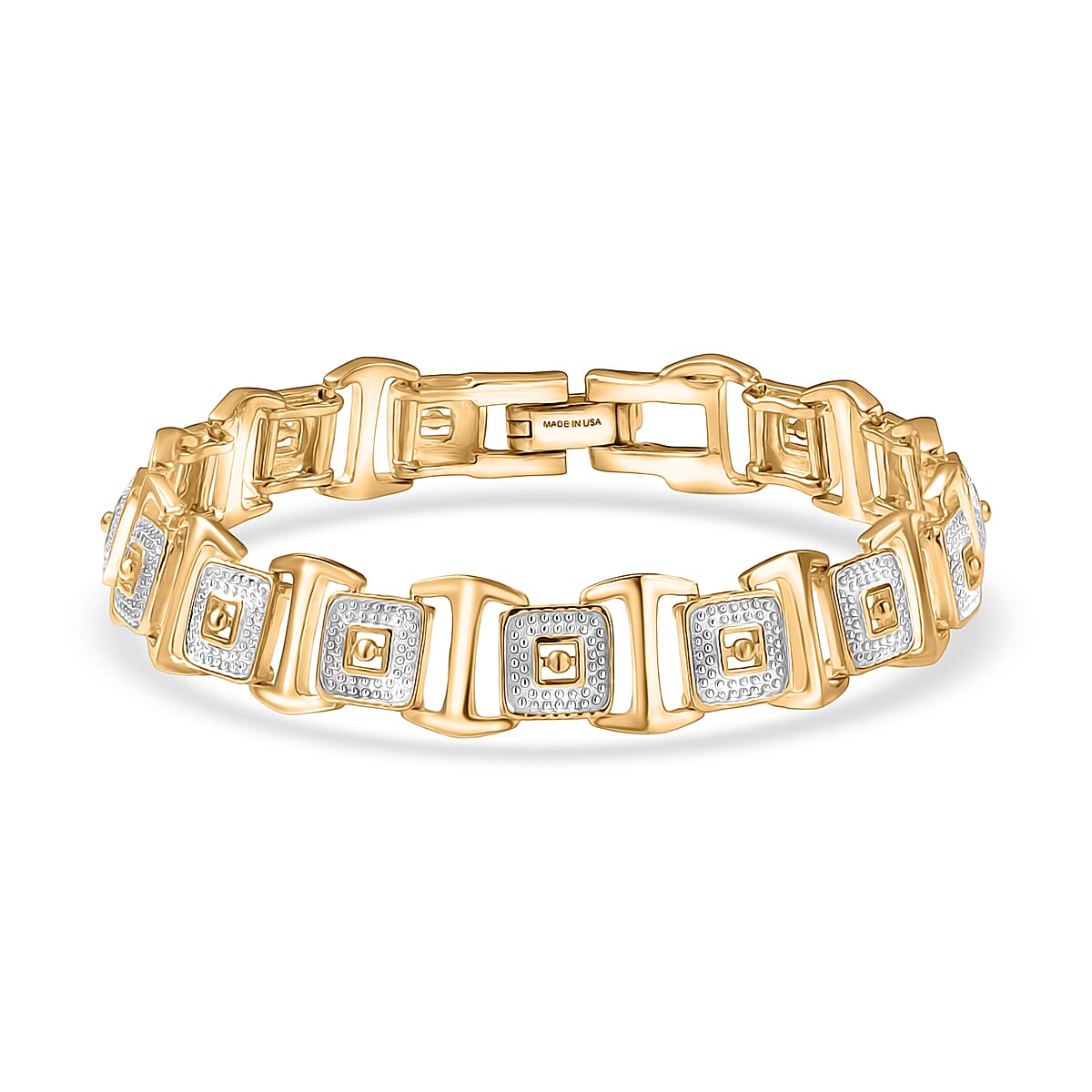 D'Joy Link Chain Bracelet in 18K Vermeil YG and Rhodium Over Sterling Silver (6.50 In) 15.45 Grams