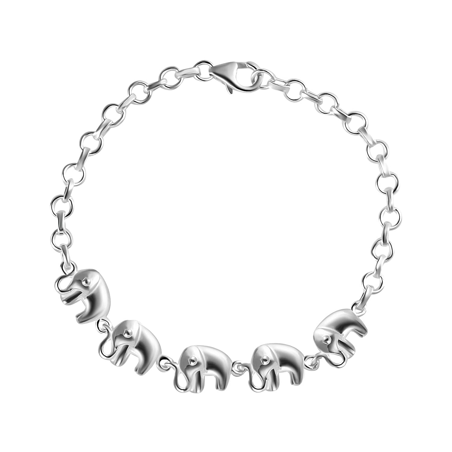 This elephant link sterling silver bracelet for women is a stunning piece of elegant and whimsical jewelry. This gorgeous bracelet features a series of intricately crafted elephant links, each one made from gleaming sterling silver. Whether you're dressing up for a night out or adding a personality to your everyday look, this bracelet will turn heads and inspire compliments.
