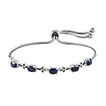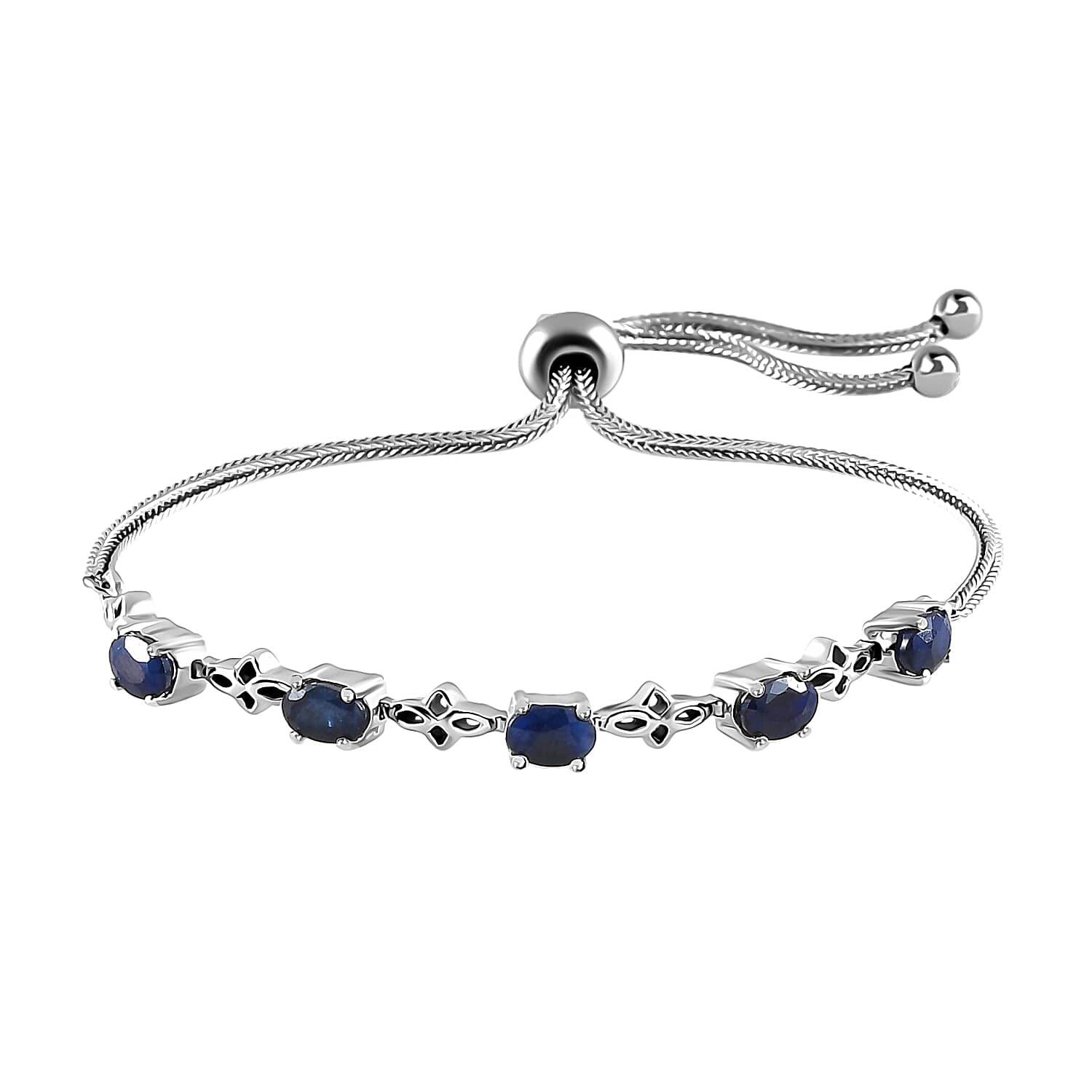 D'Joy Madagascar Blue Sapphire Bracelet, Station Bolo Bracelet, Platinum Over Sterling Silver and Stainless Steel Bracelet, Sapphire Bolo Bracelet 3.15 ctw