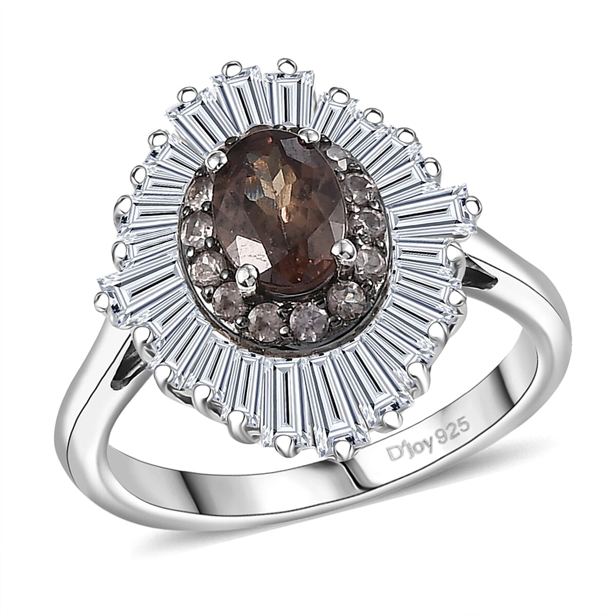 Make a dazzling impression with the DβJoy Madagascar color change garnet ring in sterling silver. This sunburst ring shifts beautifully between green and rich red hues. Featuring brilliant colorless moissanites, this sterling silver ring complements casual and formal attire with refined elegance.