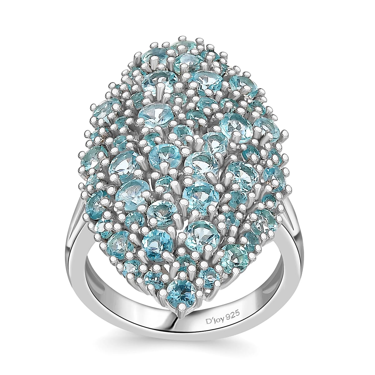 D'Joy Madagascar Lagoon Apatite 3.60 ctw Bouquet Ring in Rhodium Over Sterling Silver (Size 7.0)