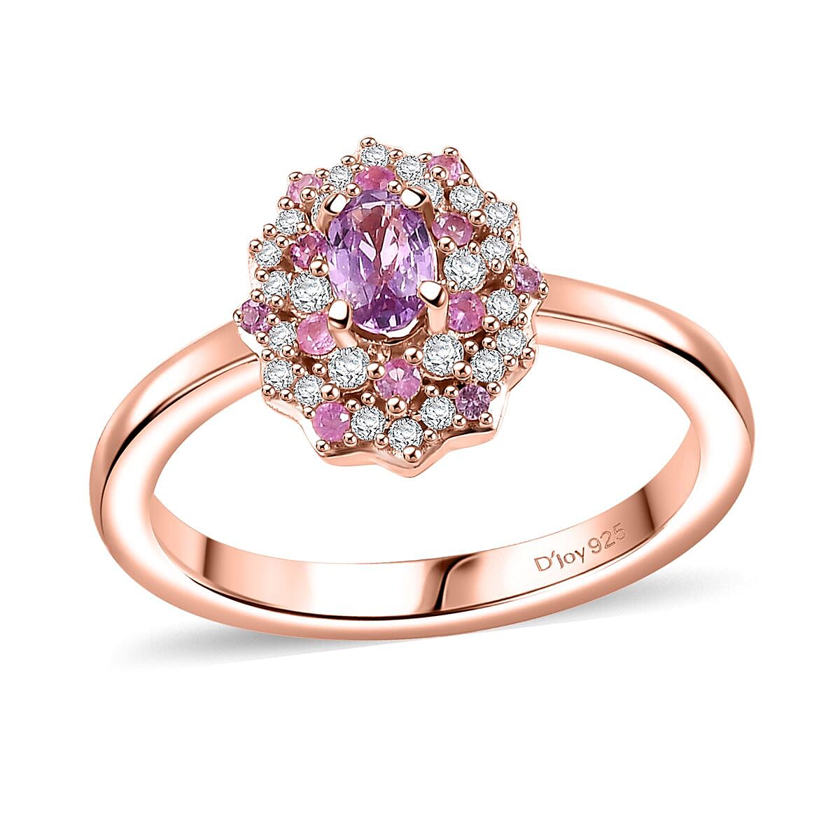 D'Joy Madagascar Purple Sapphire and Multi Gemstone 0.85 ctw Celestial Blossom Ring in 18K Vermeil Rose Gold Over Sterling Silver (Size 8.0)