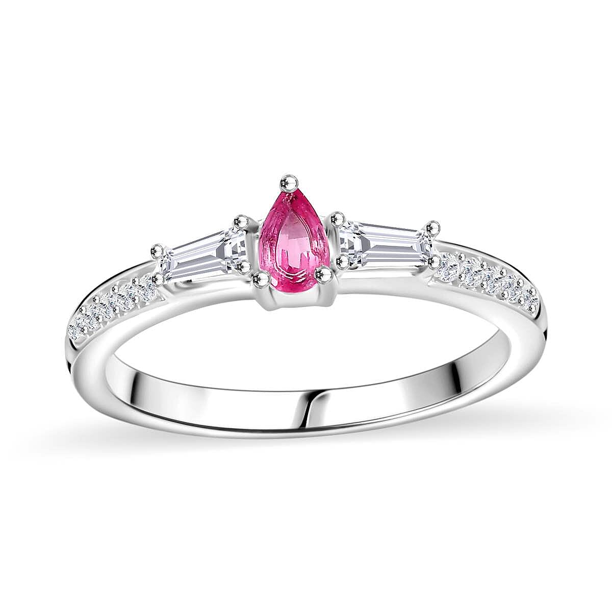 D'Joy Mahenge Spinel and Moissanite 0.55 ctw Ring in Rhodium Over Sterling Silver (Size 9.0)