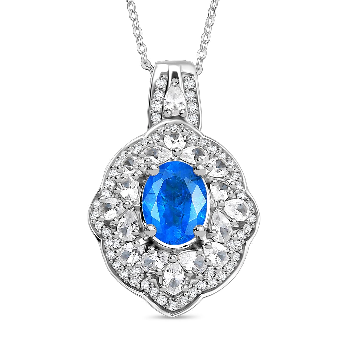 D'Joy Malgache Neon Apatite, White Zircon Pendant Necklace (20 Inches) in Rhodium Over Sterling Silver 2.90 ctw