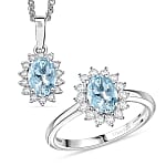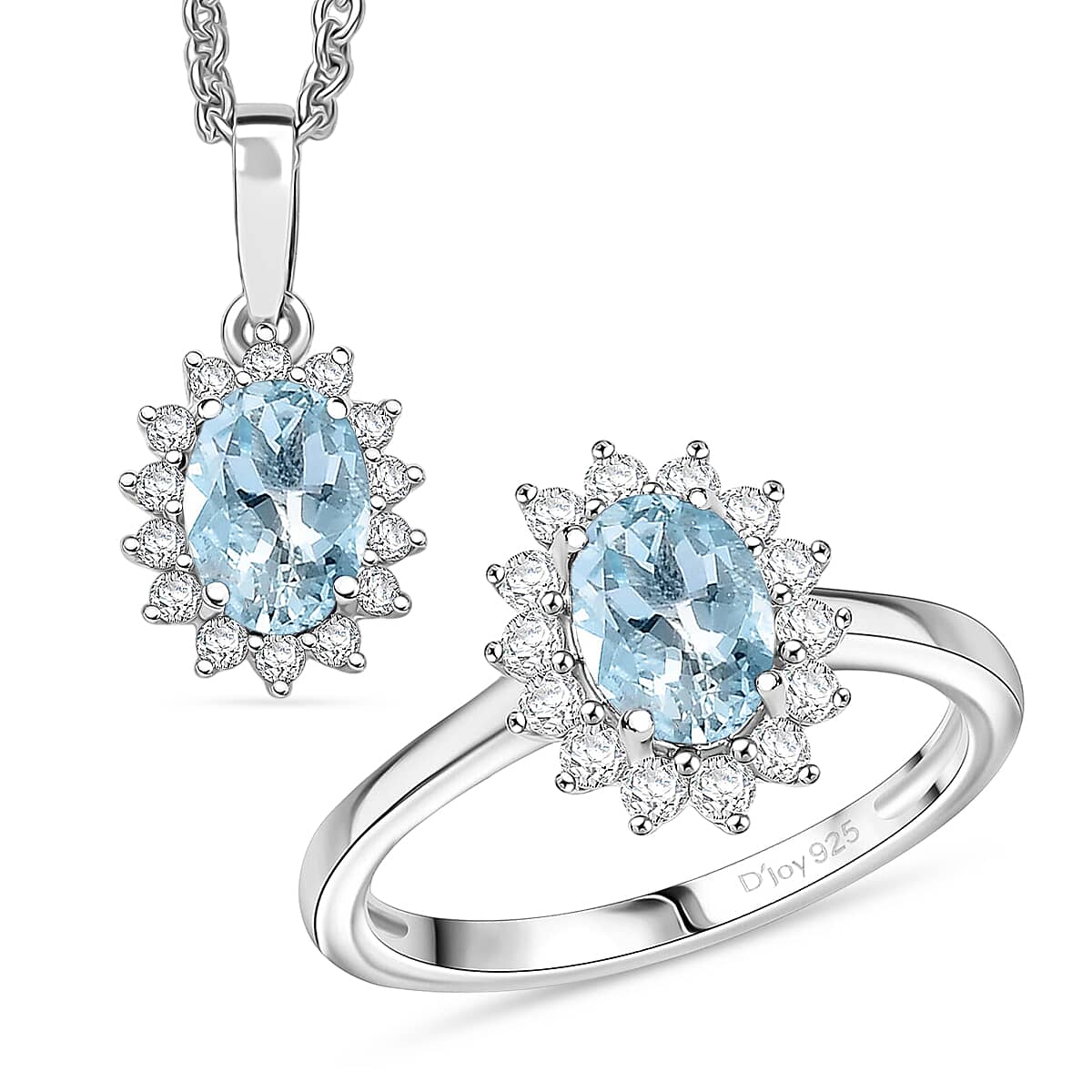 D'Joy Mangoro Aquamarine and White Zircon 2.30 ctw Ring (Size 5.0) and Pendant Necklace 20 Inches in Rhodium Over Sterling Silver (Del. In 10-12 Days)