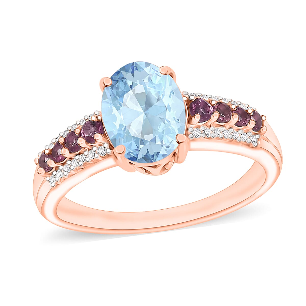 D'Joy Mangoro Aquamarine, Ouro Fino Rubellite and Diamond 2.11 ctw Ring in 18K Vermeil Rose Gold Over Sterling Silver (Size 9.5) (Del. in 10-12 Days)