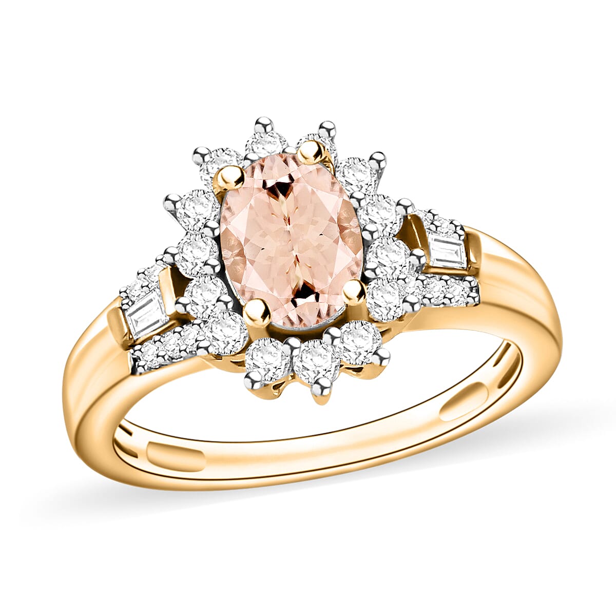 D'Joy Marropino Morganite, Moissanite Sunburst Ring in 18K Vermeil YG Over Sterling Silver 1.25 ctw (Size 7.5) (Del. In 10-12 Days)