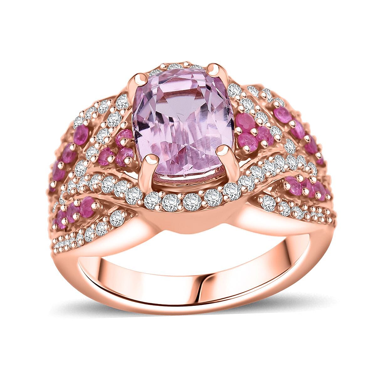 D'Joy Martha Rocha Kunzite and Multi Gemstone 3.60 ctw Blush Romance Ring in 18K Vermeil Rose Gold Over Sterling Silver (Size 10.0)