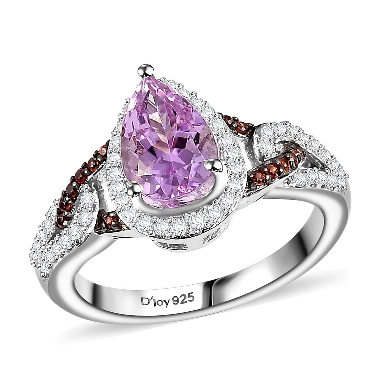 D'Joy Martha Rocha Kunzite, Brown and White Zircon 2.20 ctw Forever Ring in Rhodium Over Sterling Silver (Size 6.0)