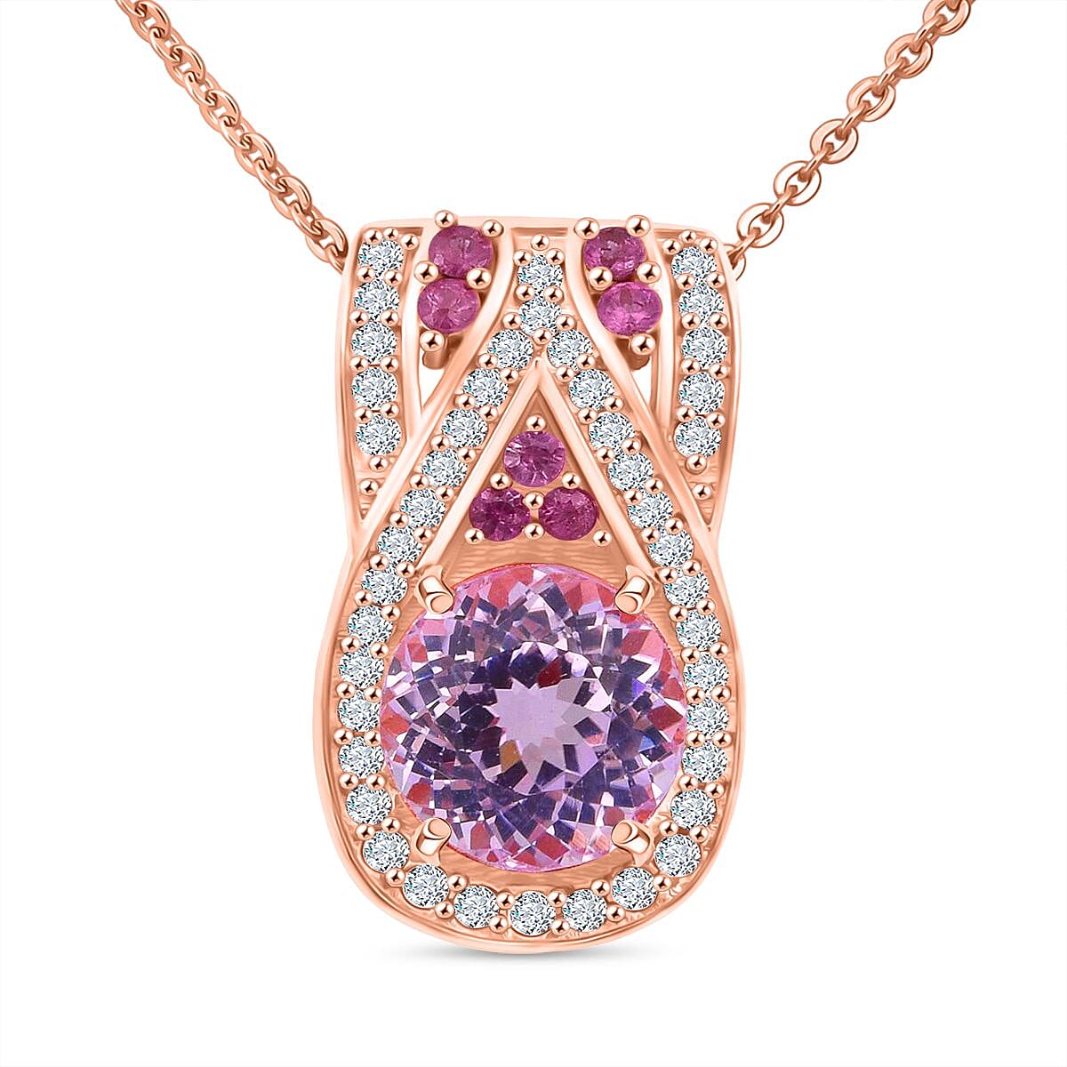 D'Joy Martha Rocha Kunzite, Multi Gemstone Pendant Necklace in 18K Vermeil RG Over Sterling Silver 3.00 ctw (20 Inches)