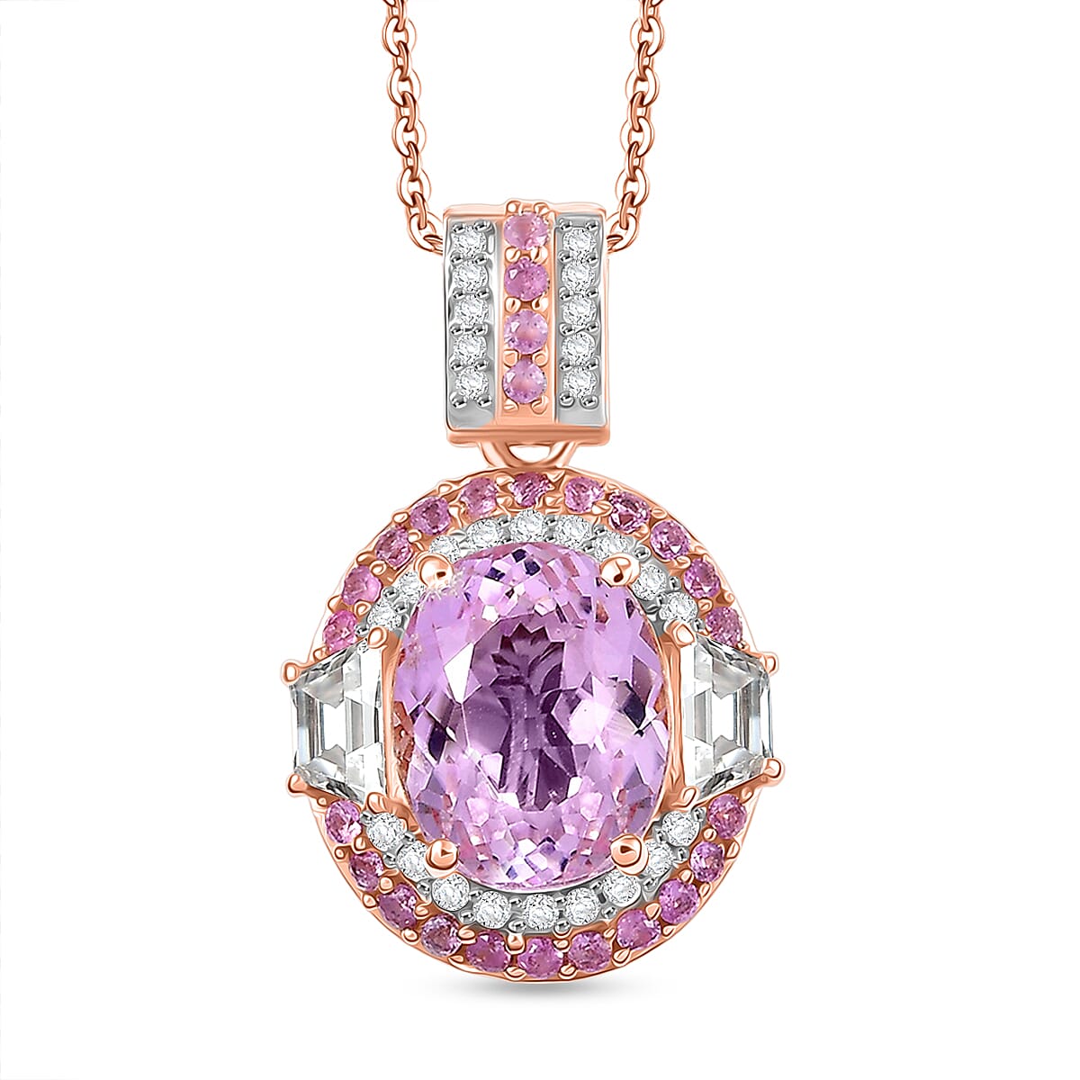 D'Joy Martha Rocha Kunzite, Multi Gemstone Pendant Necklace in 18K Vermeil RG Over Sterling Silver 4.65 ctw (20 Inches)