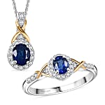 D'Joy Masoala Sapphire (D) and White Zircon 1.50 ctw Ring (Size 6) and Pendant Necklace 20 Inches in 18K Vermeil Yellow Gold and Rhodium Over Sterling Silver (Del. In 10-12 Days)