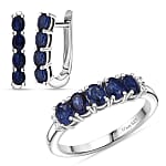 D'Joy Masoala Sapphire (D), White Zircon 3.40 ctw Band Ring (Size 5.0) and Earrings in Rhodium Over Sterling Silver (Del. In 10-12 Days)
