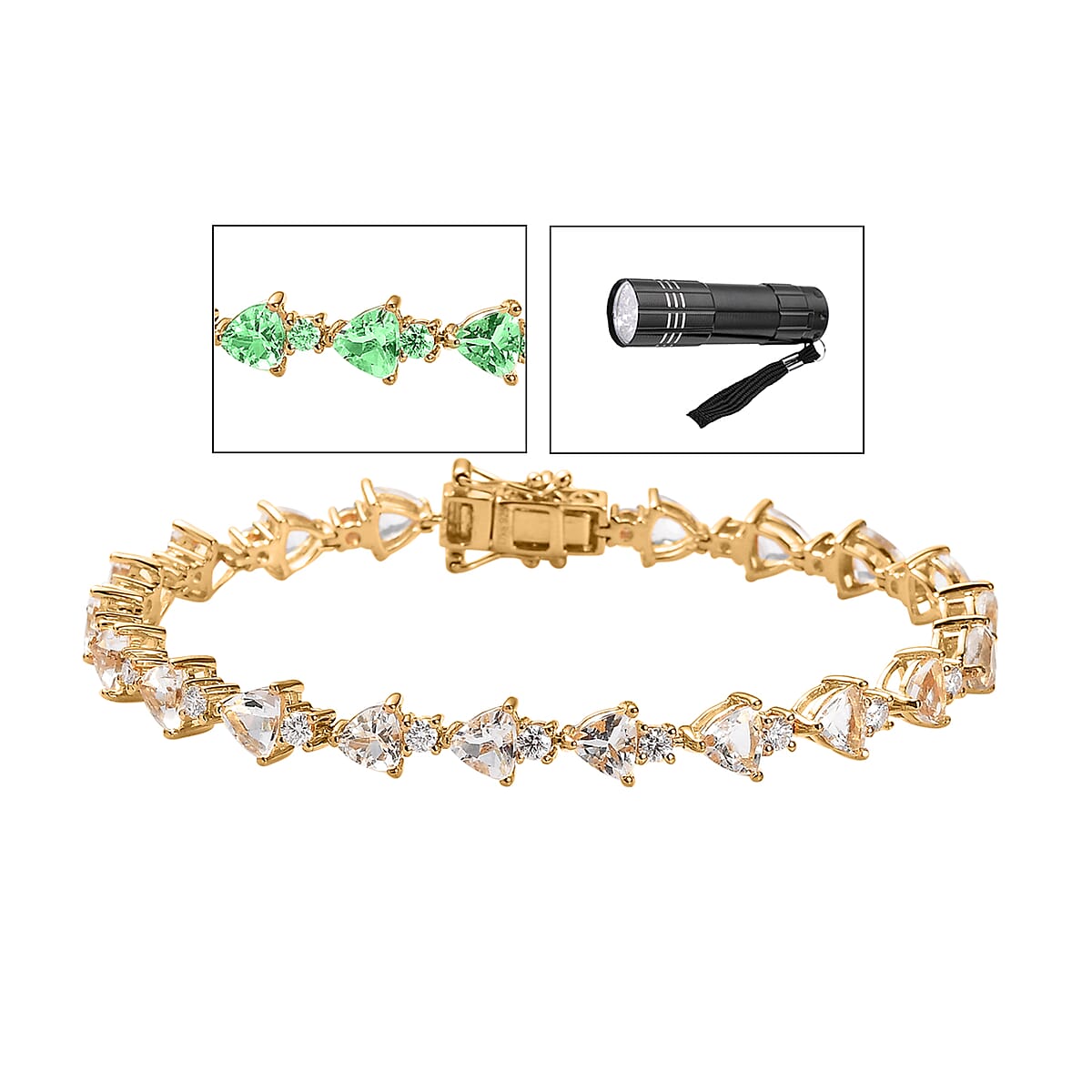 D'Joy Mexican Hyalite Opal and Moissanite Bracelet in Vermeil Yellow Gold Over Sterling Silver (7.25 In) with Free UV Flash Light 9.00 ctw