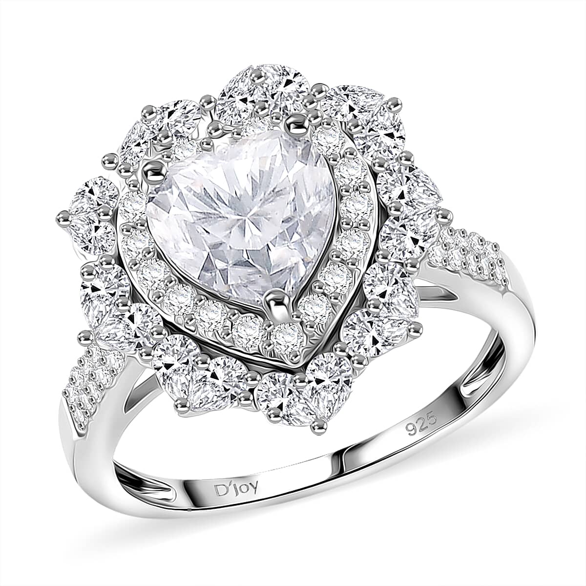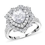 D'Joy Moissanite Heart Ring in Rhodium Over Sterling Silver 3.15 ctw (Size 8.0)
