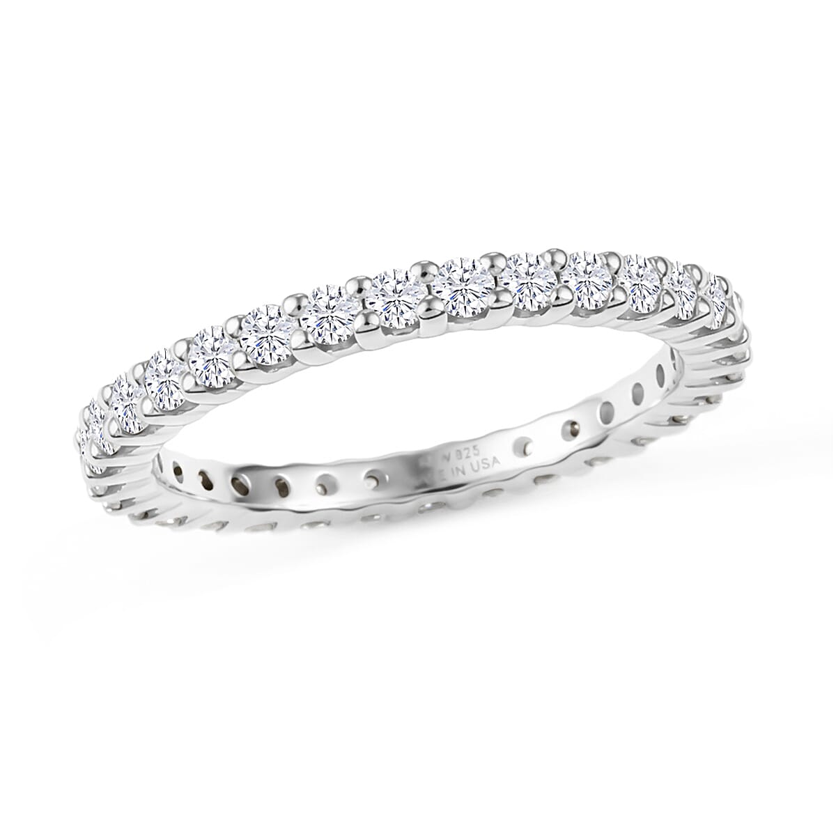 Cherish precious memories with the D'Joy moissanite ring in sterling silver. This luxury eternity ring symbolizes the beautiful bonds you share with loved ones. You'll feel a special connection to this sterling silver ring when you wear it daily.