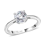 D'Joy Moissanite 0.90 ctw Solitaire Ring in Rhodium Over Sterling Silver (Size 6.0) (Del. in 5-7 Days)