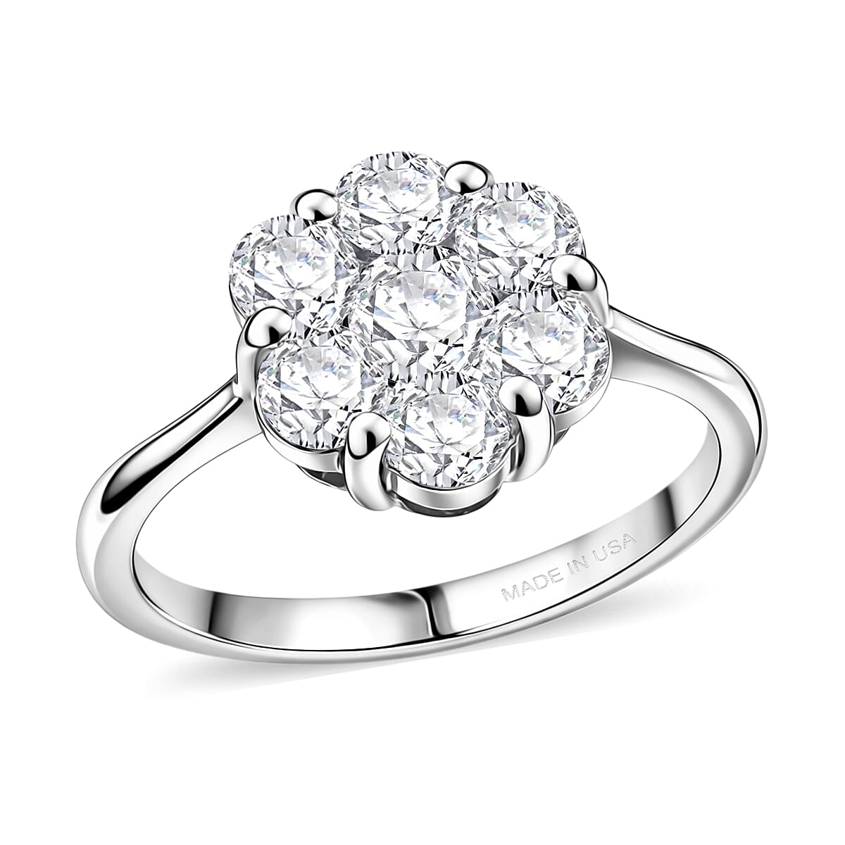 D'Joy Moissanite 1.30 ctw Floral Ring in Platinum Over Sterling Silver (Size 6.0)