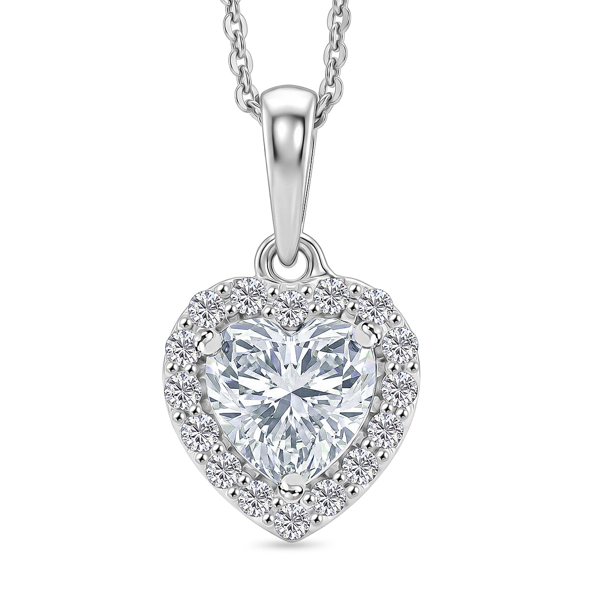 D'Joy Moissanite 1.60 ctw Heart Pendant Necklace in Rhodium Over Sterling Silver (20 Inches)