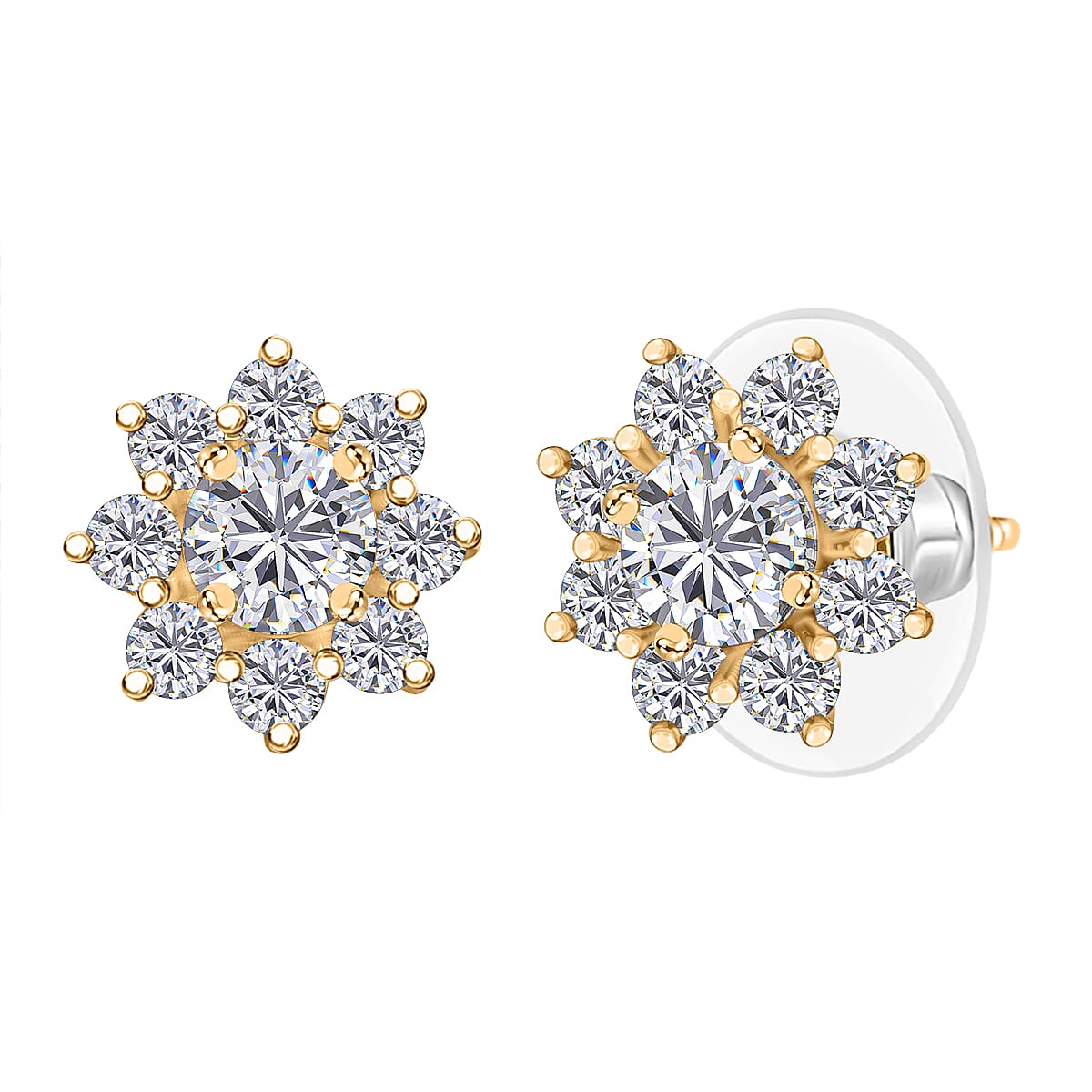 D'Joy Moissanite 1.75 ctw Floral Earrings in 18K Vermeil Yellow Gold Over Sterling Silver