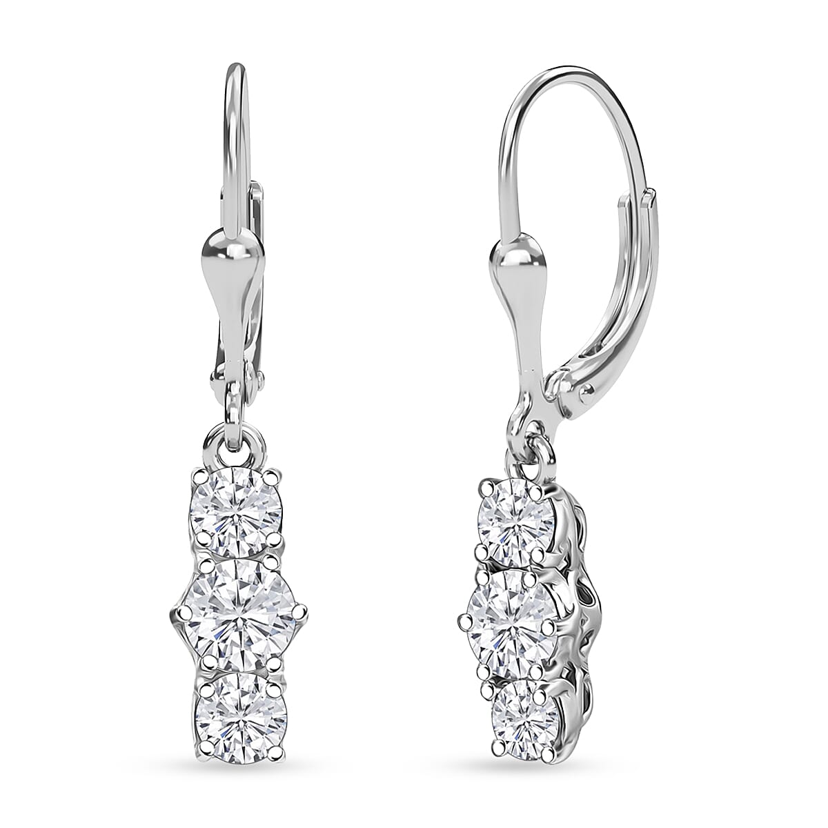 D'Joy Moissanite 1.90 ctw Trinity Earrings in Platinum Over Sterling Silver
