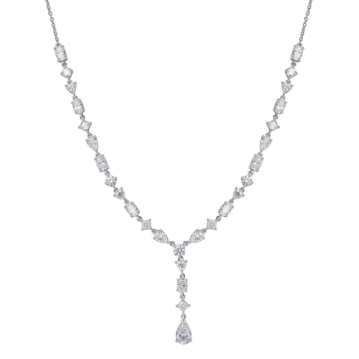 D'Joy Moissanite 10.65 ctw Cascading Droplets Necklace in Rhodium Over Sterling Silver 18-20 Inches